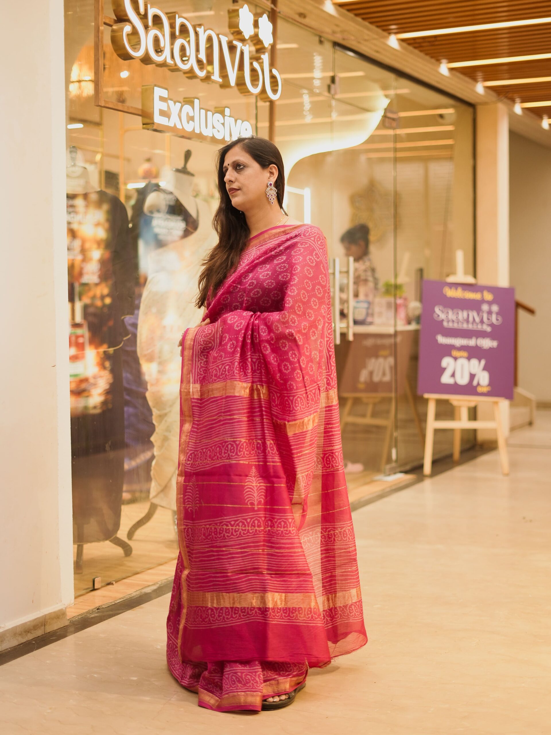 | Fabric Origin | Handwoven in Maheshwar, known for its lightweight cotton-silk or pure cotton sarees |